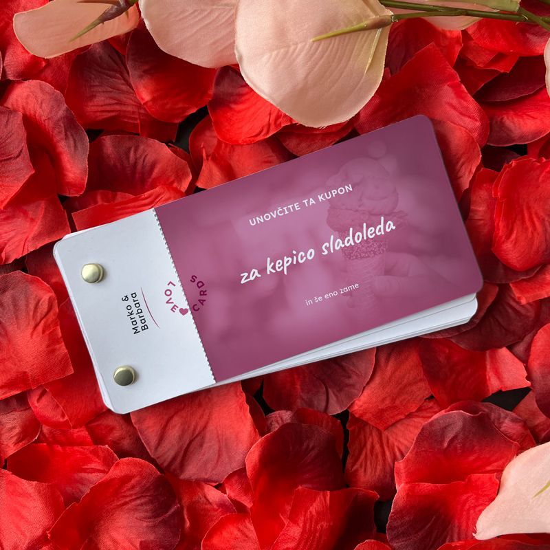 Bi želeli osrečiti svojo ljubljeno osebo, vendar ne morete najti prave ideje? Knjižica kuponov Love Cards bi lahko bila popolna rešitev za vas. Kuponi lahko predstavljajo vir veselja, uslugo ali izvzetje iz aktivnosti (na primer, danes ne rabiš pomivati posode), lahko pa so tudi malce nagajivi ali razvajajoči - popolnoma je odvisno od vaše domišljije. 😜 Love Cards lahko sestavite v nekaj minutah, besedilo in sliko prilagodite po vaši želji (lahko celo med kuponi skrijete nekaj, kar lahko uporabi ne le tvoj partner, ampak tudi ti 😉).